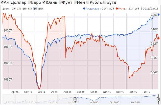 Historic low ₮2,048.18/USD set March 10, 2016. Reds are rates that set a new low at the time